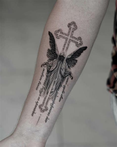 Black and gray gray for men religious & sacred christian jesus cross angel nice Bound anchor, cross, and heart. Additional elements may be thrown in for design purposes. The wings can be quite large and ornate, covering the shoulders and or much of the back. These angelic beings are believed to be associated with elegance, tranquility, as well as health.
