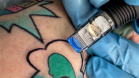 Rather, they both work by using bundles of needles of varying sizes with ink held between them while the motion of the needles pushes the ink into the dermis. As destin explains, the ink’s held between the multiple points, and when they puncture the skin, it drags the ink down into the dermis. Slow motion macro shot of a tattoo.