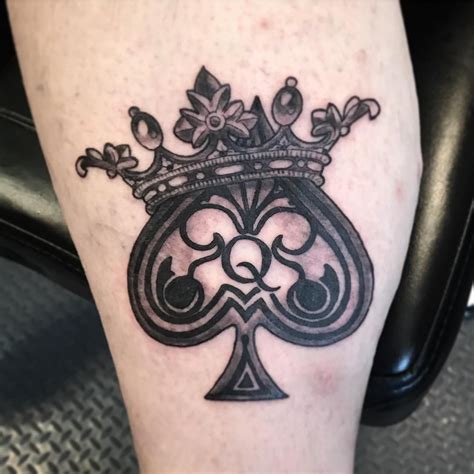 The design could include dice, triple sevens, an eight ball, dice, poker chips, cards, money, coins, gold, silver, or cherries. The tattoo artist may choose the queen of spades for a more feminine design. See more ideas about spade tattoo, ace of spades tattoo, card tattoo. Get the q letter inside or out of the spade shape, whatever you prefer!.