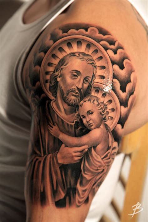 st joseph with baby Jesus and some lily flowers Tattoos from www.pinterest.co.uk