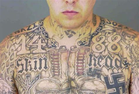 White Supremacist Tattoos, The meanings of colors or stripes on the robes tend to vary from klan group to klan group. Four totenkopfs surround the iron cross, while around the image are the german phrases für immer weiss and für immer stolz, which translate to forever white and forever proud.